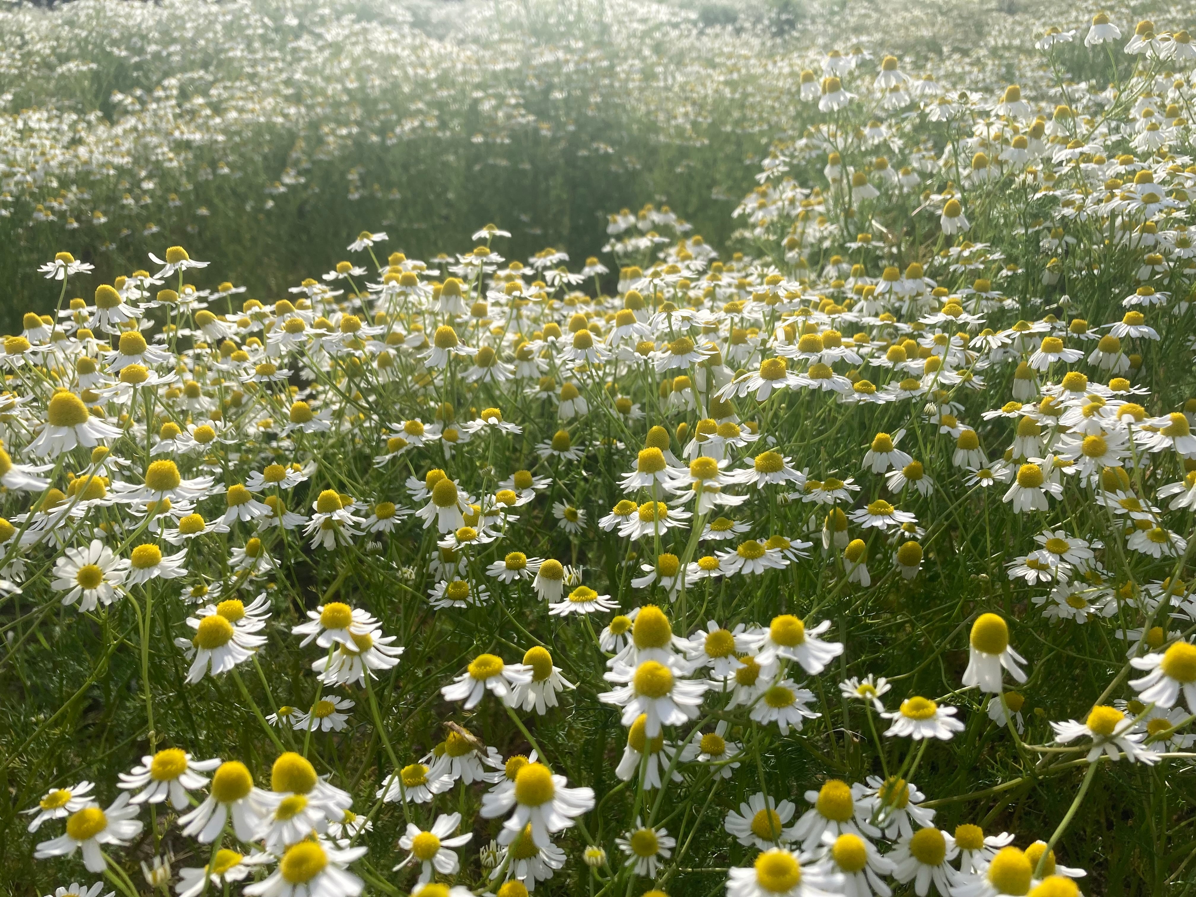 お花のハーブは、黄色のオールドローズ、カモミール、それと紫色のコーンフラワー。